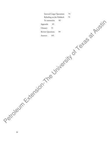 Internal Cargo Operations 79 Refueling on the Helideck 79 Petroleum Extension-The University of Texas at Austin To summarize 82 Appendix 85 Glossary 91 Review Questions 99 Answers 105 iv